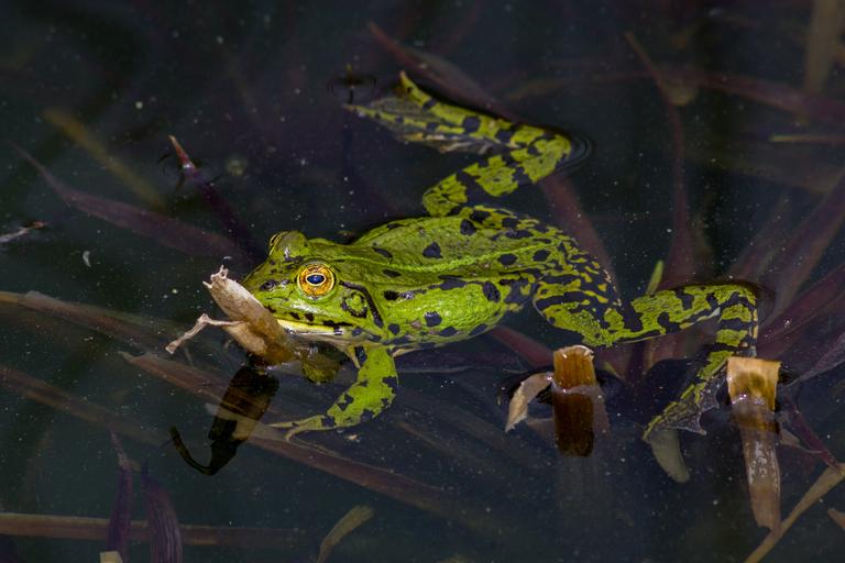 Keywords: frog amphibians water pond green nature creature animal close lake waters pond inhabitants
