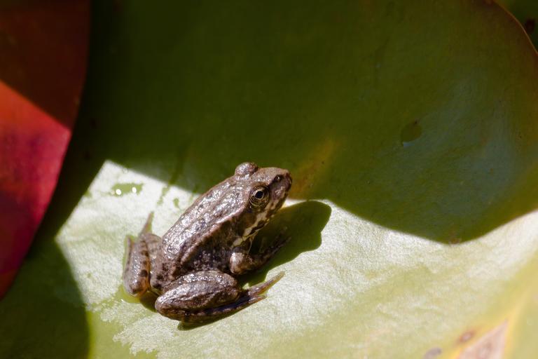 Keywords: frog lily pad green water close amphibians nature animal world garden pond pond inhabitants sunlight