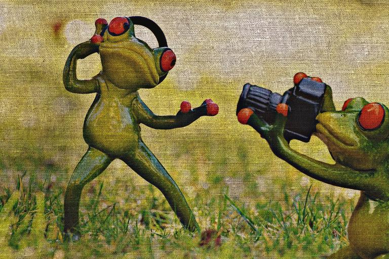 Keywords: frog photographer tissue fabric structure headphones photo shoot photograph fun animal funny camera animal world green cute fig