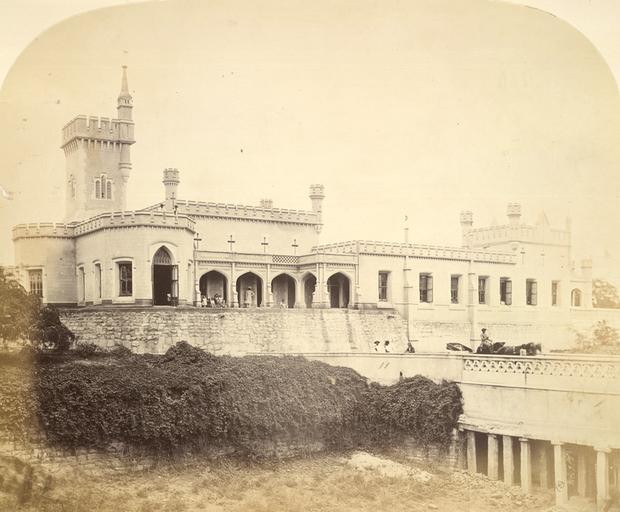 Keywords: Front view of Mr Brett's house at Hosur, near Bangalore.jpg en Photographer Dixon Henry Medium Photographic print Date 1860 Photograph of a general view of the house known locally as The Castle from the Archaeological Survey of India Collections India Office Series volume 21 'a' numbers taken by Henry Dixon in the early 1860s Built in the form of a mediaeval castle by the Collector Mr Brett 1859-62 this building served as the divisional officer's 'bungalow' It was purchased by the Government in 1875 The family group gathered on the verandah is possibly the Bretts 1860 http //www europeana eu/portal/search html query hosur Dixon Henry PD-old Uploaded with UploadWizard Historical images of Hosur Tamil Nadu in the 1860s Henry Dixon photographer |