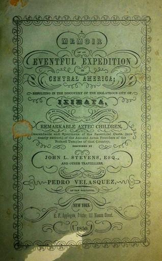 Keywords: Front wrapper of Pedro Velasquez's Memoir of an Eventful expedition in Central America.jpg en Front cover of Pedro Velasquez's Memoir of an eventful expedition in Central America resulting in the discovery of the idolatrous city of Iximaya in an unexplored region and the possession of two remarkable Aztec children descendants and specimens of the sacerdotal caste now nearly extinct of the ancient Aztec founders of the ruined temples of that country / described by John L Stevens Esq and other travellers ; translated from the Spanish of Pedro Velasquez of San Salvador http //pennrare wordpress com/2014/04/08/maximo-and-bartola-and-the-myth-of-iximaya/ Pedro Velasquez 1850 PD-old-70-1923 Maximo and Bartola |