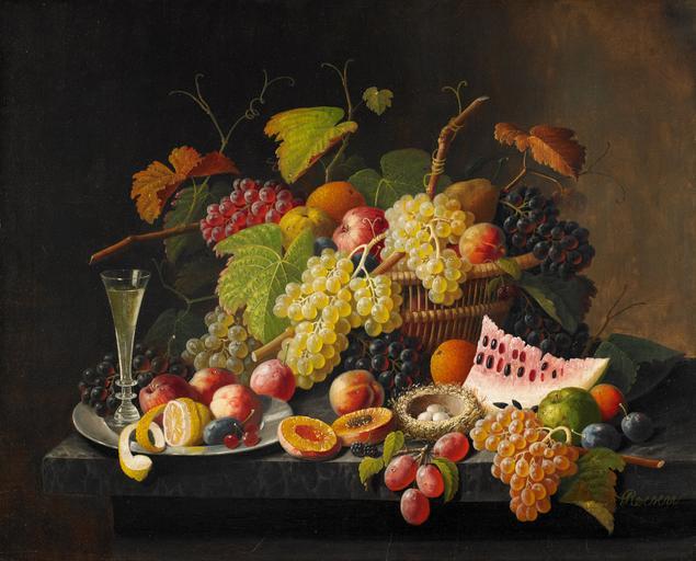 Keywords: Fruit Still Life by Severin Roesen.jpg en Fruit Still Life by Severin Roesen about 1865 institution Birmingham Museum of Art http //www artsbma org/pieces/fruit-still-life/afi278-96/ creator Severin Roesen Severin Roesen United States born Germany 1816 - 1872 oil on canvas circa 1865 Accession number AFI 278 2010 Credit Line Collection of the Art Fund Inc at the Birmingham Museum of Art; Gift of Mr and Mrs Victor H Hanson III Provenance With Coe Kerr Gallery New York New York; purchased in 1979 by Clarence Bloodworth Hanson Jr 1908-1983 and Elizabeth Beth Fletcher Hanson 1910-2001 Birmingham Ala ; by descent to their grandson Victor H Hanson III and his wife Mary Randolph Hanson Birmingham Ala ; by gift to the Art Fund Inc at the Birmingham Museum of Art Birmingham Ala December 29 2010 other versions PD-100 Uploaded with UploadWizard American paintings in the Birmingham Museum of Art 1865 paintings Severin Roesen |