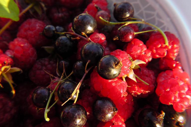Keywords: fruits of the forest fruit plate black currants berries raspberries frisch pleasure