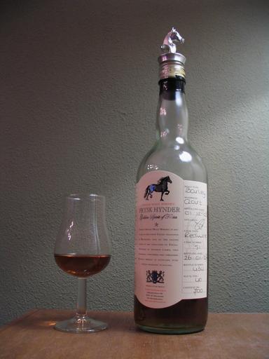 Keywords: Frysk Hynder with glass.jpg Bottle of Frysk Hynder whisky and a glass Own 2008-01-12 Brinkie public domain Whisky bottles
