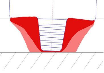 Keywords: Fsw periaate poikkileikkaus pit paine.png fi Poikkileikkauskuva FSW hitsauksesta Hitsaussuunta kuvassa vasemmalle ja työkalun pyörimissuunta vastapäivään en A cross-sectional image w friction stir welding FSW showing the plunge depth tilt of the tool The tool is moving to the left 2007-03-06 own assumed Jtmonone~commonswiki Welding diagrams Friction welding |
