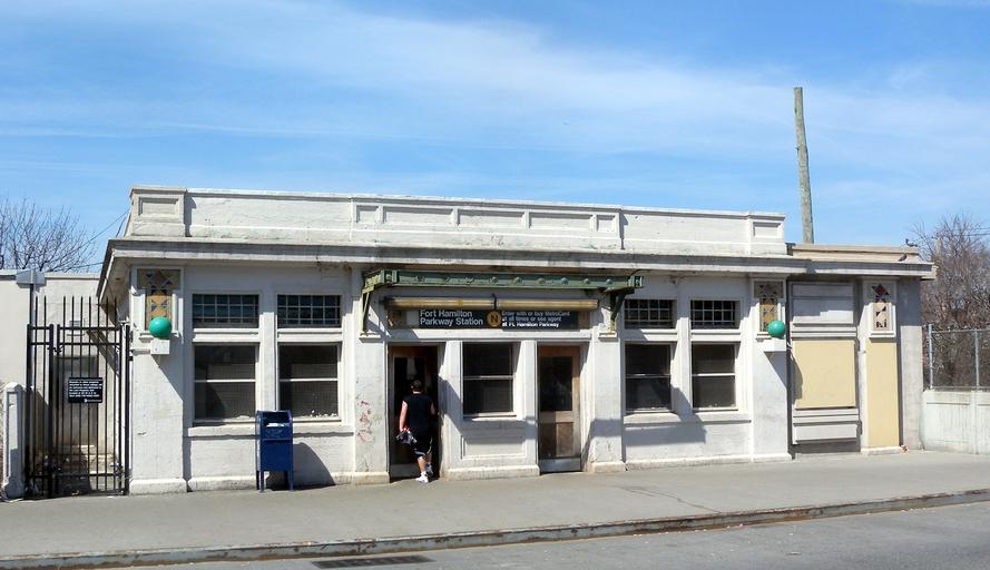 | Keywords: Ft Hamilton N sta jeh.JPG en Looking northwest across 11th Avenue at Ft Hamilton Pkwy station of its Sea Beach Line on a sunny afternoon own Jim henderson 2010-03-20 40 37 49 6 N 74 0 14 2 W alt 15_heading NNW cc-zero Fort Hamilton Parkway BMT Sea Beach Line New York City Subway entrances in Brooklyn |