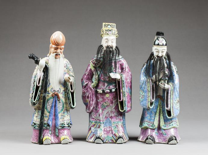 | Keywords: Fu, Lu och Shou xing från kinesisk mytologi, 1900-tal - Hallwylska museet - 100914.tif LSH artwork sv FIGUR Lu Xing stjärnguden för hög rang Stående med vänstra handen framför bröstet den högra hållande en ju-i-spira Skägg och mustascher av svart tagel Iklädd svart huvudbonad och fotsid rödgredelin rock med ornament i gult blått och rödgredelint <br/>Lu Xing är en av de tre taoistiska stjärngudarna för lycka hög rang och långt liv <br/>Inköpt hos Bukowskis konsthandel 1910 tillsammans med XI C h b 28I och30 för 4 500 Kr <br/>Figure Figure The Three Star Gods of Longevity High Rank and Happiness porcelain decorated in overglaze enamels<br/>Qing dynasty c 1900<br/>The Three Daoist Star Gods were deities linked by astrologers to planets and stars in the sky Popular in temples and households they may still be seen in Chinese shops and restaurants today The central figure of Shou Xing deity of long life has an enlarged cranium denoting wisdom An old man he holds a staff in one hand the one of the Peaches of Immortality in the other Lu Xing deity of High Rank holds a ruyi wish-fulfilling sceptre in one hand and wears the cap and robes of an official Fu Xing deity of Happiness carries a small boy in his hands Fu Xing and Lu Xing both have real hair inserted into holes in their faces to form luxuriant beards moustaches and whiskers The triad were bought at Bukowskis in 1910 and the pieces were probably made not long before that date original caption Fu Lu och Shou xing från kinesiskmytologi 1900-tal <br/> Nyckelord Mytologi Religioner Figurer 1900 size cm 57 HWY place of origin CN original filename hm_dig16340 14858 inventory number HWY XLVIII XI C h b 29 100914 CC-BY-SA Jens Mohr <gallery caption Different images of same object > File Kinesisk figur föreställande Shou Xing är en av de tre taoistiska stjärngudarna för lycka - Hallwylska museet - 95994 tif </gallery> Religion Mythology Figurines Chinese ceramics in the Hallwyl Museum Sweden Glass Porcelain Ceramics of Korea Ceramics of Japan Ceramics Jens Mohr Media contributed by LSH 2015-11 |