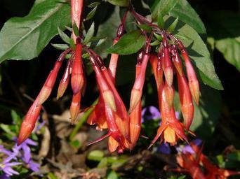 Keywords: fuchsia flowers red orange red orange depend closed flora evening primrose greenhouse onagraceae fuchsia flowers fuchsia triphylla coral fuchsia oblong trichterförmig tubular long