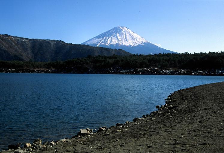 Keywords: FujiLakeShore.jpg Lake Sai Yamanashi Prefecture Japan self-photographed User Fg2 Mount Fuji from Lake Sai Lake Sai