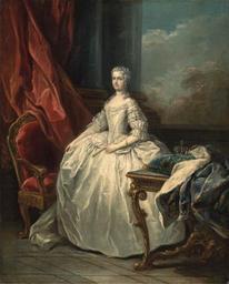 Keywords: Full portrait of Queen Marie Leczinska from the circle of Carl van Loo.jpg Circle of 1725 Oil on canvas cm 80 6 64 7 unknown Christie's online 1480249 other versions PD-old-100 DEFAULTSORT 1725; Marie Leczinska by van Loo Portrait paintings by Charles André van Loo 18th-century unidentified painters from France 18th-century portrait paintings location missing Portraits of Marie Leszczyńska 1720s dresses 1725 portrait paintings from France 18th-century oil portraits of standing women at full length Armchairs in portrait paintings Clouds in art Columns in portrait paintings Drapery in portrait paintings Ermine clothing in art Females with white dresses in art Lace sleeves in art Mantle fleurdelisé in portrait paintings Panniers clothing in portrait paintings Portrait paintings of women with crowns on cushions Portraits with fans Portraits in palace loggia Tables in portrait paintings Paintings by Jean-Baptiste van Loo with fur |