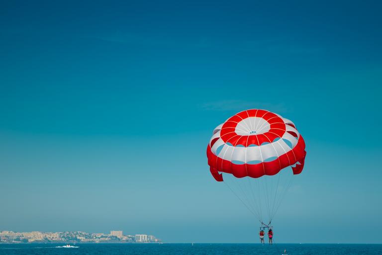 Keywords: fun balloon sport summer beach fly red white sky boat landscape