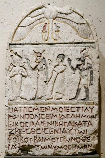 | Keywords: Funerary stele Louvre N330.jpg Funerary stele of Elemōn showing the deceased in Egyptian dress led by Anubis to Osiris and Hathor Stèle funéraire d'Élémōn montrant le défunt en tenue égyptienne mené par Anubis à Osiris et Hathor century 1 AD limestone My homeland is Lycopolis ; I am Elemōn who saw his fate end in his 21st year A servant of Phoebus and and the Muses I was famous everywhere Ma patrie est Lycopolis ; je suis Élémōn qui a vu son destin s'éteindre au cours de sa 21e année Serviteur de Phébus et des Muses j'étais célèbre en tout lieu trad E Bernand Institution Louvre object department Egyptian antiquities object history ProvenanceEvent discovery Lykopolis credit line before 1857 accession number Louvre number 330 own photo date 2012-12-02 User Jastrow/cc-by-2 5 artwork license PD-old-100-1923 photo license Cc-by-2 5 other versions Roman-era Greek funerary inscriptions Steles of Roman Egypt Ancient Egyptian funerary steles East Mediterranean in the Roman Empire antiquities in the Louvre - Room 1 Taken with Nikon D300s Taken with Sigma 17-50mm F2 8 EX DC OS HSM |