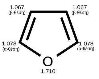 Keywords: Furan Electron Density.svg en Furan electron density el Κατανομή ηλεκτρονιακής υκνότητας στο φουράνιο own Xhmikos 4/8/2009 Furan
