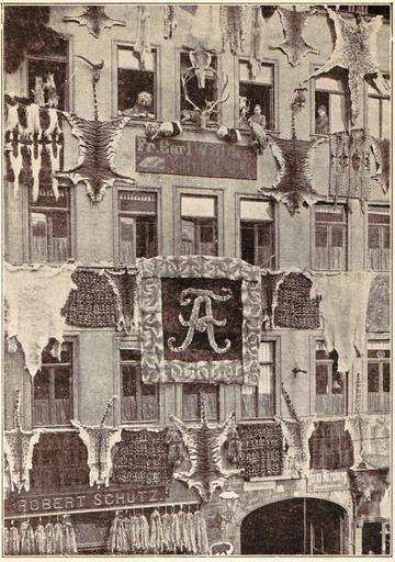 Keywords: Furs by Schutz&Woebke.jpg Furs in Leipzig Germany Dekorationen der Firmen Robert Schütz und Fr Carl Wöbke Leipzig Brühl 55 beim Einzug Sr Majestät König Friedrich August III in Leipzig <br/> Decoration de maisons Robert Schütz et C Wöbke à Leipzig à occasion de la visite du roi de Saxe en cette ville en 1904 <br/> Decorations prepared by Robert Schütz and C Wöbke Bruhl to celebrate His Majesty the King of Saxon`s visit to Leipzig in 1904 Hans Würzburg Rauchwaren P Pellifex No 1 Die Annalen der Kürschnerei / Les Annales de la Fourrure / Annals of furs Die Pelzmosaik / La Mosaïque en Fourrures / The Furs Mosaic Verlag / Éditeur / Editor M Melzer Frankenstein Schlesien Deutschland / Allemagne / Germany A Paris chez J Strasky 236 rue du Fbg-St-Martin S 45 1904 --Kuerschner 19 41 27 February 2008 UTC <gallery>Furs by Schutz Woebke Leipzig cropped jpg</gallery> PD-old Furs Furriers Fur carpets Brühl Leipzig Shop windows in Leipzig Furrier's shops Schütz Wöbke Furriers in Leipzig Schutz Woebke Fur wholesale dealers in Leipzig Schütz Wöbke Leopard fur-skins Guereza fur-skins Guanaco fur-skins Skunk fur-skins Antlers Giraffe fur-skins Wolf fur-skins Civet cat fur-skins Taxidermied lions Platypus fur-skins Intermediate furs Fur bundles Die Pelzmosaik - La Mosaïque en Fourrures - The Fur Mosaic P Pellifex 45 Fur fashion in 1904 |