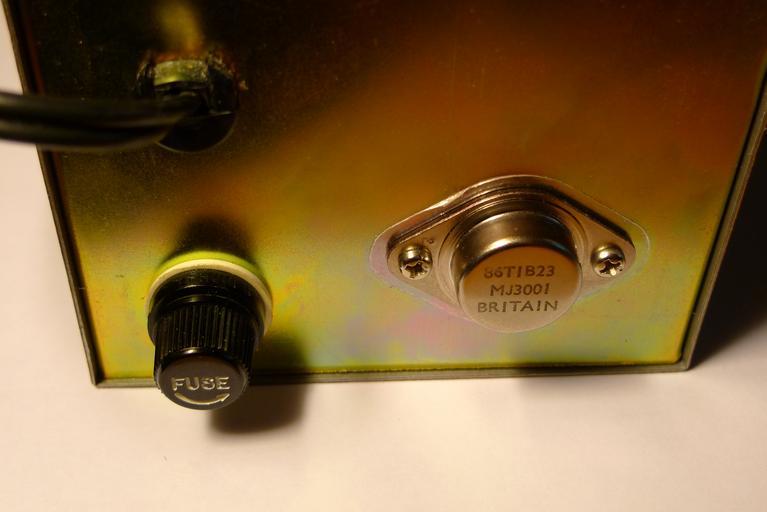 Keywords: Fuse and MJ3001 Darlington transistor.JPG en Power supply box with fuse socket to the left and an MJ3001 PNP Darlington transistor in a TO-3 package to the right 2013-12-07 18 12 33 own Anonimski cc-zero Uploaded with UploadWizard Fuses Bipolar junction transistors |