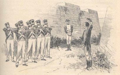Keywords: Fusilamiento del teniente general Luis Lacy y Gautier (5-7-1817).jpg Luis Lacy y Gautier Fue fusilado el día 5 de julio de 1817 en los fosos del Castillo de Bellver El dibujo no reproduce fielmente la ejecución del general Lacy ya que el general recibió la descarga sentado en una silla por padecer en esos momentos un ataque de gota century 19 http //www congreso es/docu/blog/img/lacyG jpg source PD-art-100 Uploaded with UploadWizard Luis Lacy y Gautier Bellver Castle |