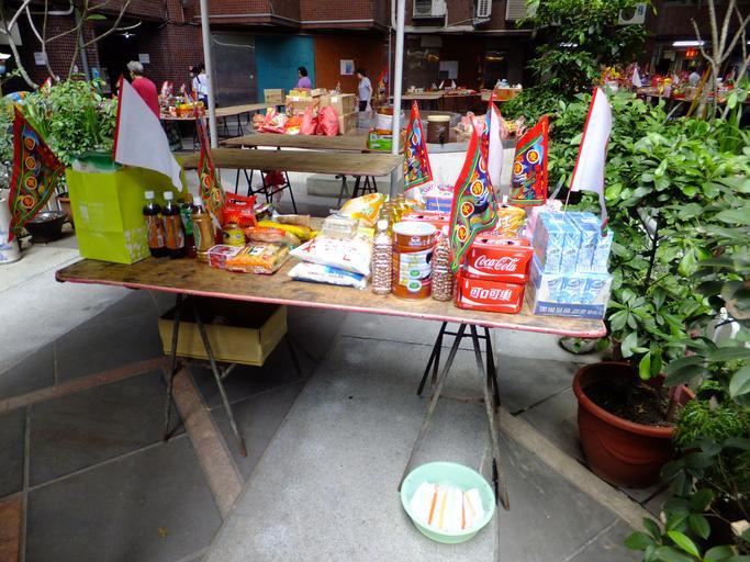 Keywords: Futai Village 2012 Ghost Festival before Opening 20120825g.JPG zh-tw 2012年臺北市 山 富泰里中元普渡法 ,新光民生廣場華廈中庭中部 張祭品準備好的供桌 桌兩戶共用,留意桌下盛水的毛巾, 戶四口四 毛巾,法 結 後再分交 人擦臉 2012-08-25 12 37 59 Own 玄史生 other versions 2012 Ghost Festival of Futai Village Songshan District Taipei Tables in Taiwan 玄史生写 文庫 Taken with Fujifilm FinePix F550EXR Uploaded with UploadWizard cc-zero |