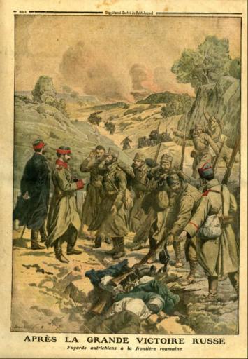| Keywords: Fuyards autrichiens a la frontiere roumaine.png en Image form Le Petit Journal Austria-Hungarian POWs on roumanian frontier after Brusilov Offensive ru Иллюст ация из Le Petit Journal Авст о-Венге ские пленные на умынской г анице после б усиловского п о ыва fr Illustration de Le Petit Journal Austro-Hongrese fuyards a la frontiere roumaine apres Offensive Broussilov http //shura luberetsky ru from Le Petit Journal 1916-06-02 PD-Art Brusilov Offensive 1916 Le Petit Journal | ||||
