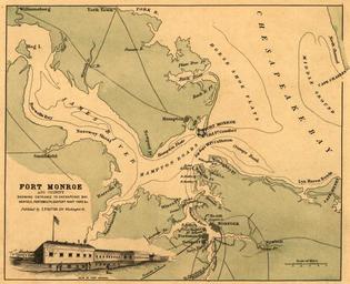 Keywords: sketch map drawing cartoon text illustration writing monochrome G3884_H2_2F6_186_D8: Fort Monroe and vicinity showing entrance to Chesapeake Bay, Norfolk, Portsmouth, Gosport Navy Yard, etc. Created by E.P. Dutton, Boston, 1860. Courtesy of the Library of Congress: Geography and Maps Division. G3884_H2_2F6_186_D8: Fort Monroe and vicinity showing entrance to Chesapeake Bay, Norfolk, Portsmouth, Gosport Navy Yard, etc. Created by E.P. Dutton, Boston, 1860. Courtesy of the Library of Congress: Geography and Maps Division. |