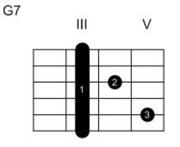 Keywords: G-Dur-7 Barré.jpg Eigenanfertigung 2005-12-01 own assumed Red Rooster Guitar chords in standard tuning