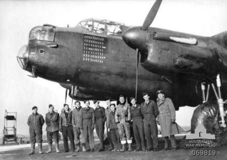 | Keywords: G for George air and ground crew Binbrook Dec 1943 AWM 069819.jpg AWM caption Binbrook Lincolnshire England December 1943 G for George the Avro Lancaster Heavy Bomber of No 460 Squadron RAAF with the air and ground crews <br> Left to right Unidentified ground crew member unidentified 412914 Pilot Officer R C Coveny RAAF Wireless Operator and Air Gunner Flight Sergeant Harry Tickle RAAF Non Commissioned Officer in Charge of the aircraft Sergeant L Regan RAF Flight Engineer Warrant Officer H G Carter RAAF Pilot unidentified Corporal J Nuttall RAAF Second in Charge Ground Crew Flight Sergeant K Harris RAAF Bomb Aimer 421030 Flying Officer G Peters RAAF Navigator Flying Officer J Howarth DFM RAF Mid Upper Gunner Warrant Officer F G Brown RAAF Rear Gunner The other air crew member was in hospital when this photograph was taken 069819 1943-12 not stated PD-Australia G for George Avro Lancaster aircrew World War II people of the Royal Australian Air Force RAF Binbrook ImageNote 1 120 200 24 106 450 318 2 412914 Pilot Officer R C Coveny RAAF Wireless Operator and Air Gunner ImageNoteEnd 1 ImageNote 2 145 198 23 111 450 318 2 Flight Sergeant Harry Tickle RAAF Non Commissioned Officer in Charge of the aircraft ImageNoteEnd 2 ImageNote 3 165 198 21 111 450 318 2 Sergeant L Regan RAF Flight Engineer ImageNoteEnd 3 ImageNote 4 183 198 25 106 450 318 2 Warrant Officer H G Carter RAAF Pilot ImageNoteEnd 4 ImageNote 6 257 190 23 115 450 318 2 421030 Flying Officer G Peters RAAF Navigator ImageNoteEnd 6 ImageNote 7 308 177 45 124 450 318 2 Warrant Officer F G Brown RAAF Rear Gunner ImageNoteEnd 7 ImageNote 8 283 187 28 121 450 318 2 Flying Officer J Howarth DFM RAF Mid Upper Gunner ImageNoteEnd 8 ImageNote 9 235 193 23 113 450 318 2 Flight Sergeant K Harris RAAF Bomb Aimer ImageNoteEnd 9 ImageNote 10 221 207 14 98 450 318 2 Corporal J Nuttall RAAF Second in Charge Ground Crew ImageNoteEnd 10 ImageNote 11 208 197 14 114 450 318 2 unidentified ImageNoteEnd 11 Avro Lancaster in Australian service Harry Tickle December 1943 photographs Binbrook December 1943 in Lincolnshire 19431200 Binbrook |