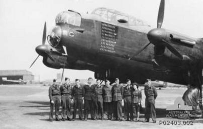 Keywords: G for George last mission crew AWM P02403.002.jpg AWM caption The Avro Lancaster bomber 'G' George AR-G W4783 460 Squadron RAAF and the crew members who flew the aircraft on its last operation 'G' George flew its first bombing operation against Mannheim Germany on 6 December 1942 and its last operation against Cologne Germany on 20 April 1944 The bomb log is visible underneath the cockpit showing 90 completed operations however the aircraft's log book only records 89 <br> Identified from left Sergeant Sgt George Knott RAF Flight Engineer Sgt Leo Armstrong RAAF Navigator Flying Officer Jack Critchley RAAF Pilot unidentified ground crew Pilot Officer Roy Samson RAAF Wireless Operator Squadron Chaplain Squadron Administrative Officer Sgt Fred Shaw RAF Rear Gunner unidentified Womens' Auxiliary Air Force Sgt Sgt Wilf Starkey RAF Mid Upper Gunner The aircraft is now part of the National Collection held at the Australian War Memorial P02403 002 1944-04 not stated PD-Australia G for George World War II people of the Royal Australian Air Force Avro Lancaster aircrew ImageNote 1 108 173 25 101 450 285 2 Sergeant Sgt George Knott RAF Flight Engineer ImageNoteEnd 1 ImageNote 2 132 171 25 102 450 285 2 Sgt Leo Armstrong RAAF Navigator ImageNoteEnd 2 ImageNote 3 156 170 28 100 450 285 2 Flying Officer Jack Critchley RAAF Pilot ImageNoteEnd 3 ImageNote 4 205 170 25 94 450 285 2 Pilot Officer Roy Samson RAAF Wireless Operator ImageNoteEnd 4 ImageNote 5 316 170 34 97 450 285 2 Sgt Wilf Starkey RAF Mid Upper Gunner ImageNoteEnd 5 ImageNote 6 276 173 27 93 450 285 2 Sgt Fred Shaw RAF Rear Gunner ImageNoteEnd 6 ImageNote 7 253 171 30 98 450 285 2 Squadron Administrative Officer ImageNoteEnd 7 ImageNote 8 229 173 28 90 450 285 2 Squadron Chaplain ImageNoteEnd 8 Avro Lancaster in Australian service