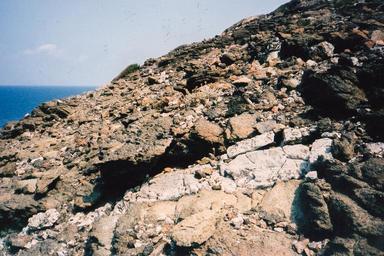 Keywords: Gabbroic vein in peridotite, Cap Corse.jpg en White-gray gabbro vein in dark brown peridotite northern slope of the Monte Maggiore at Ersa Cap Corse Haute-Corse Corsica Summer 1995 fr Veine de gabbro blanc-gris dans une péridotite brun foncé versant nord du Monte Maggiore à Ersa Cap Corse Haute-Corse Été 1995 2014-05-11 02 34 50 own Cardioceras 43 003 9 356 Taken in summer 1995 near Sémaphore du Cap Corse looking northeast cc-zero Uploaded with UploadWizard Geology of Haute-Corse Cap Corse Peridotite Gabbro Dikes volcanism in France |