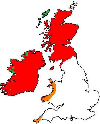| Keywords: Gaelic British Isles.jpg Irish LéirÃonn an Ãomhá seo na teorannacha is leithne a raibh an Sean-Ghaeilge á labhairt dearg Éire Alban Oileán Mhanainn san áireamh mar aon le háiteanna i dtuaisceart Shasana iarthar na Breataine Bige agus Corn na Breataine LéirÃonn an Ãomhá áit ina mbÃonn clocha nó croimleacha le abairtà scrÃofa san ogham iontu oráiste ScrÃobhadh an chuid is mó de na habairtà seo sa tSean-Ghaeilge Gaelic Bidh an dealbh seo a' taisbeanadh an sgìre na bu mhotha far a bheilear an dùil Seann-Ghà idhlig air bruidhinn dearg a' gabhail a-steach Èireann Alba Eilein Mhannain agus à itichean ann an taobh tuath Shasainn taobh siar Chumraigh aus a' Chòirn Bidh an dealbh cuideachd a' taisbeanadh far a faighear clachan le sgrìobhadh oghaim orainds Bha a' mhòr-chiud den sgrìobhaidhean seo air an sgrìobhadh sa Seann-Ghà idhlig French Cette image montre la superficie maximale où l ™on parlait le vieil irlandais ou gaélique rouge y compris Irlande Écosse l ™Isle de Man et aussi quelques endroits comme le nord d'Angleterre l ™ouest du Pays de Galles et en Cornouailles L ™image montre les régions dans lesquelles on trouve des pierres avec des inscriptions oghamiques orange La plupart de ces inscriptions sont écrites en ancien irlandais English This image shows the maximum area where Old Irish or Gaelic was spoken red including Ireland Scotland Isle of Man and also some places in northern England western Wales and Cornwall The image shows the area where there are stones with Ogham inscriptions orange Most of these stones are written in old Irish The green areas are those where Gaelic is still spoken as the vernacular Spanish Esta imagen muestra la superficie máxima donde se hablaba el irlandés antiguo o gaélico rojo entre ellos Irlanda Escocia la Isla de Man y también algunos lugares en el norte de Inglaterra el oeste de Gales y Cornualles La imagen muestra el área donde hay piedras con inscripciones Ogham naranja La mayorÃa de estas inscripciones están escritas en gaélico antiguo 2008-11-27 Transferred from http //en wikipedia org en wikipedia by Ronhjones D de loinsigh at en wikipedia other versions D de loinsigh Original upload log page en wikipedia Gaelic_British_Isles jpg Upload date User Bytes Dimensions Comment 2008-11-27 04 57 UTC D de loinsigh 35379 bytes 469×580 <small><nowiki>LéirÃonn an t-Ãomhá seo na teoiraiannacha is leithne a raibh an sean-Ghaeilge á labhairt dearg Éire Alba Oileán Mhainainn san áireamh mar aon le áiteanna i dtuaisceart Shasana iarthar na Breataine Bige agus Corn na Breataine LéirÃonn a</nowiki></small> Celtic languages Maps of the British Isles |