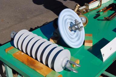 Keywords: Gaishi.JPG ja 鉄道の架線支持に使用されるがいし類(つくばエキスプレス祭りでの車両基 開放時に撮影) 投稿 が撮影 toshinori baba 2010-11-23 Electric insulators