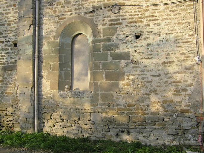 Keywords: Galeata Pantano Fianco Finestra.JPG Fianco destro di Santa Maria in Pantano Galeata in cui si riconosce a sinistra una lesena di sostegno in basso la muratura originaria della fiancata ed un po' piu su i conci squadrati di arenaria che formano la monofora probabilmente rimaneggiata nell'arco Il tutto appartenente alla originaria chiesa romanica Own Icco80 Santa Maria in Pantano Galeata |