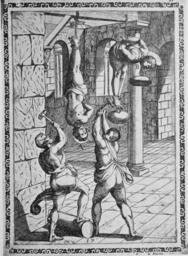 Keywords: Gallonio Tortures 1591 p04.jpg Woodcut by Tempesta showing a torture/execution scene of martyrs from Gallonio's Tortures and Torments of the Christian Martyrs «Trattato degli instrumenti di martiro e delle varie maniere di martoriare usate da' gentili contro christiani descritti et intagliate in rame; opera di Antonio Gallonio» first publication Rome 1591 / scans from a 1904 reprint woodcut by Antonio Tempesta Reproduction of a painting that is in the public domain because of its age PD-old-100 Trattato degli instrumenti di martiro |