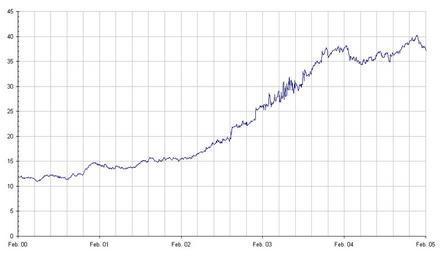 Keywords: Gambia dalasi 5Jahre.png Beschreibung Kursverlauf EUR/GMD Zeitskala 5 Jahre Quelle Chart selbst erstellt am 09 Februar 2005 Fotograf oder Zeichner --Atamari 16 08 9 Feb 2005 UTC Money of Gambia Graphics by User Atamari Euro exchange rate charts 2005 in Gambia |