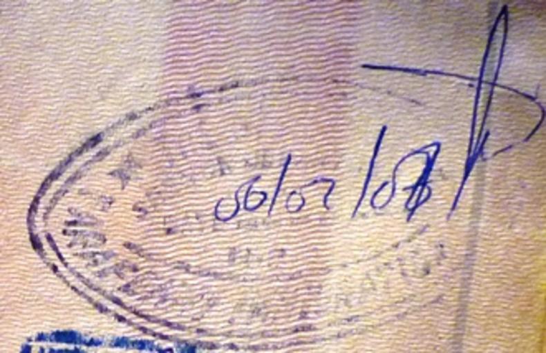 Keywords: Gambia exit stamp 2007.jpg en Gambia exit stamp from the border crossing in Farafenni Stamped in 2007 into a Polish passport 2016-12-28 19 39 06 own Botev other versions cc-zero Passport stamps of the Gambia