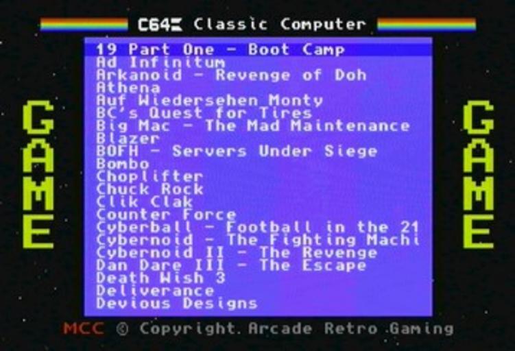 Keywords: Gameselection wiki.jpg en Game selection menu HMI Multiple Classic Computer MCC-216 own Retrogaming Commodore 64 screenshots Video game screenshots Commodore 64 games