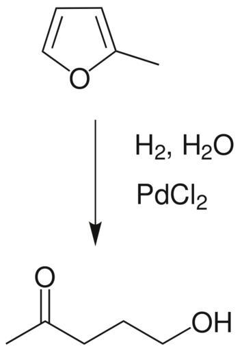 | Keywords: Gamma-Acetylpropanol synthesis.svg en Gamma-Acetylpropanol_synthesis own Choij 2009-12-13 ImageNote 1 10 1 64 42 109 158 2 2-Methylfuran 2-甲基呋喃 ImageNoteEnd 1 ImageNote 2 58 77 39 21 109 158 2 Palladium II chloride 氯化钯 ImageNoteEnd 2 ImageNote 3 2 117 103 38 109 158 2 Gamma-Acetylpropanol 乙酰丙醇 ImageNoteEnd 3 Ketones Primary alcohols |
