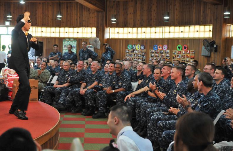 | Keywords: Gangnam style with US navy.jpg Uploaded with en wp UW marker 2012 09 12 A resident of the Aikwangwon Home and School for the Mentally and Physically Disabled performs the song Gangnam Style for 117 active-duty and reserve Sailors during their community service visit 120825-N-UN744-034 Navy http //www navy mil/management/photodb/photos/120825-N-UN744-034 jpg http //www navy mil/view_image asp id 132250 Mass Communication Specialist 1st Class Travis Simmons / U S Navy PD-USGov-Military-Navy Gangnam Style Military entertainment |