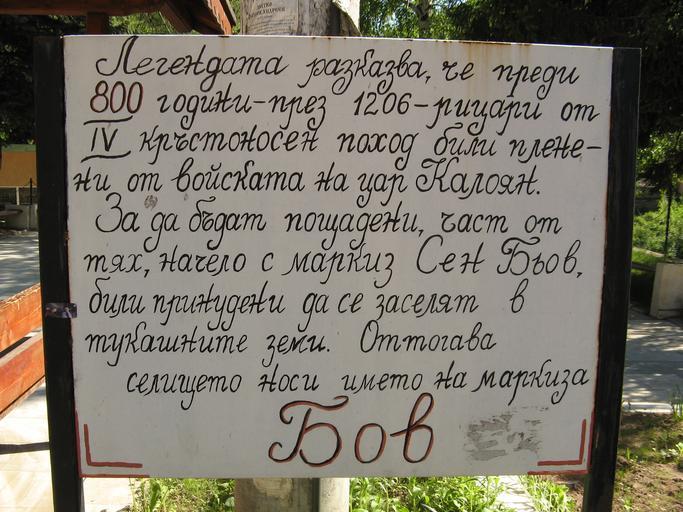 Keywords: Gara Bov info board (Bulgaria).jpg en Gara Bov information board Bulgaria bg Га а Бов инфо мационна табела за исто ията на селото own S-kay Gara Bov Signs in Bulgaria Cyrillic writing History of Bulgaria Handwriting
