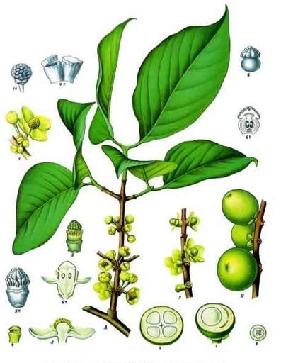 | Keywords: Garcinia morella - Köhler–s Medizinal-Pflanzen-063.jpg Garcinia A Blüthenzweig der männlichen Pflanze natürl Grösse; B Fruchtzweig desgl ; 1 Zweigstück mit männlichen Blüthen vergrössert; 1<sup>a</sup> Staubgefässköpfchen nach Hanbury desgl ; 2 Zweigstück mit weiblichen Blüthen desgl ; 3 männliche Blüthe im Längsschnitt desgl ; 4 geöffnetes Staubgefäss desgl ; 4<sup>a</sup> 2 Staubgefässe geöffnet und ungeöffnet nach Bâillon; 5 Fruchtknoten mit Staminodienkranz desgl ; 5<sup>a</sup> dieselbe Figur nach Hanbury; 6 Fruchtknoten mit Narbe desgl nach Hanbury; 6<sup>a</sup> weibliche Blüthe im Längsschnitt desgl ; 6<sup>b</sup> Fruchtknoten im Längsschnitt desgl nach Hanbury; 7 Fruchtquerschnitt mit nur einem fruchtbaren Fache natürl Grösse; 8 derselbe mit 4 fruchtbaren Fächern desgl ; 9 Querschnitt durch den Fruchtknoten vergrössert Garcinia morella Га циния мо елла A цветущая ветвь мужского астения; B плодущая ветвь; 1 часть ветви с мужскими цветками; 1<sup>a</sup> синанд ий по Хэнбе и; 2 часть ветви с женскими цветками; 3 мужской цветок в п одольном аз езе; 4 аск ывшаяся тычинка; 4<sup>a</sup> 2 тычинки аск ывшаяся и не аск ывшаяся по Байону; 5 завязь со с осшимися стаминодиями по Байону; 5<sup>a</sup> то же по Хэнбе и; 6 завязь с ыльцем по Хэнбе и; 6<sup>a</sup> женский цветок в п одольном аз езе; 6<sup>b</sup> завязь в п одольном аз езе по Хэнбе и; 7 попе ечный с ез плода с одним сегментом; 8 то же для плода с 4 сегментами; 9 завязь в попе ечном аз езе 1897 http //pharm1 pharmazie uni-greifswald de/allgemei/koehler/koeh-eng htm List of Koehler Images Franz Eugen Köhler Köhler's Medizinal-Pflanzen PD-old Köhler's Medizinal-Pflanzen Garcinia morella |