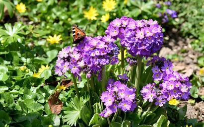 Keywords: garden flowers spring spring flowers plant primrose drumstick purple butterfly nature