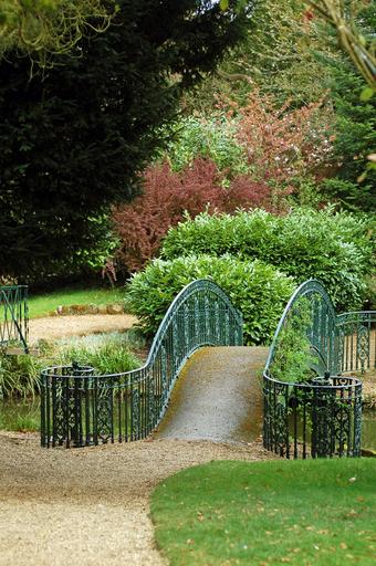 Keywords: garden gardening spring plants shrubs pond park bridge