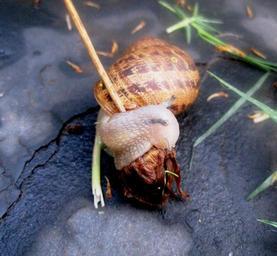 Keywords: garden snail snail common delicate transparent shell brown devouring