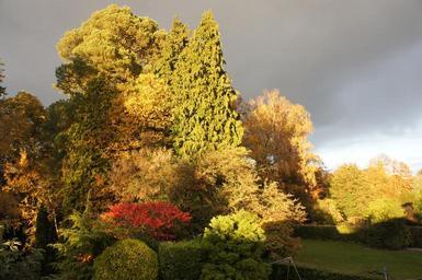Keywords: garden sun trees summer sunny landscape sunlight colorful foliage