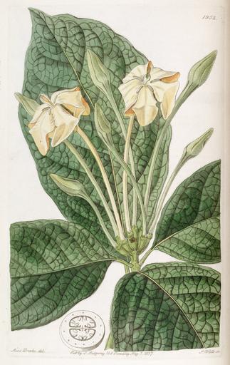 Keywords: Gardenia pannea Bot. Reg. 23. 1952. 1837.jpg Gardenia pannea Edwards's Botanical Register; Consisting of Coloured Figures of Exotic Plants Cultivated in British Gardens; with their History and Mode of Treatment London 23 t 1952 1837 Lindley PD-Art Gardenia pannea Edwards's Botanical Register vol 23 |