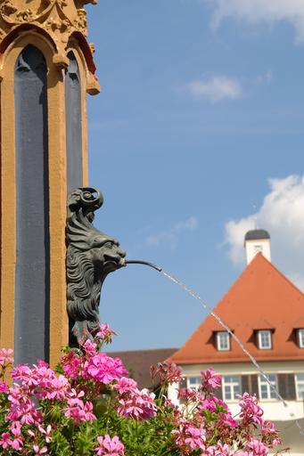 Keywords: gargoyle fountain water jet water water feature wet fig flow fountain city ulm geranium flowers pink ornamental plants pelargonium peltatum hybrid pelargoniums pelargonium geranium greenhouse geraniaceae