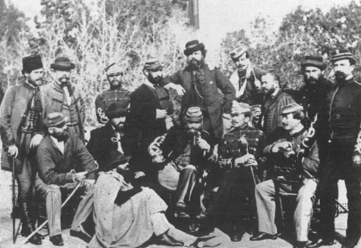 Keywords: Garibaldi-légió.jpg hu A Garibaldi-légió magyar önkénteseinek csoportja A csoport balszélén Reé János kapitány áll Önként végigküzdötte a szabadságharcot utána évekig raboskodott az žÃšj épületben onnan megszökve a Bakonyban bujdosott majd 1859-ben Klapka György felhÃvását követve jelentkezett az olaszországi magyar légióba A szicÃliai és Nápoly környéki harcok után Türr István nápolyi kormányzósága idején annak szárnysegéde volt http //www tankonyvtar hu/historia-1992-03/historia-1992-03-081013-6 author 1860 A fénykép eredetije leánya udvardi Cserna Vincéné Reé Eleonóra meghalt kb 1930-ban albumából származik PD-old History of Hungary 1850 “1918 |