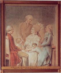 Keywords: Garlieb Helwig Sillem and Family.jpg Artwork nl Familieportret gemaakt door Daniel Chodowiecki In het Sillem familieportret plaatste hij zichzelf uiterst links tekenend Afgebeeld zijn Garlieb Helwig en Louise Maria met hun kinderen Jean links Franciska en Jérome Sillem met badminton racket century 18 institution Reproduction in family archive date 2007-05-22 other versions PD-old-100 DEFAULTSORT 1780s around; Sillem family Paintings by Daniel Chodowiecki 18th-century portrait paintings location missing Sillem family 18th-century portrait paintings not categorised by year 18th-century family portraits 18th-century people of the Netherlands 18th-century portrait paintings Chairs in portraits Group portraits with 6 persons Painting frames Uploaded with UploadWizard