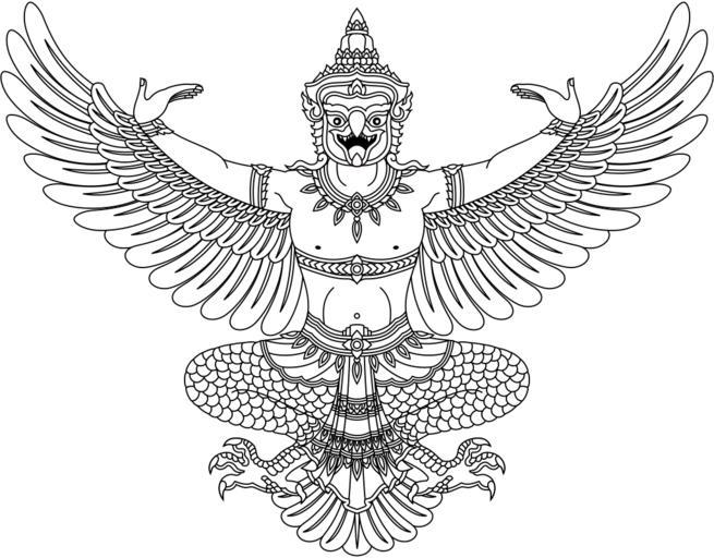 Keywords: Garuda Emblem of Thailand (Monochrome 2).svg en National Emblem of Thailand depicting a dancing Garuda with outstretched wings The Garuda symbolizes the government and people of Thailand as Lord Vishnu symbolizes King of Thailand th พระราชลัญจกรพระครุฑพ่าห์ ซึ่ง ป็นตราแ ่นดินของประ ทศไทย ป็นรูปครุฑรำกางกร แขน สยายปักษ์ ปีก พระราชลัญจกรองค์นี้แสดงถึงรัฐบาลและปวงชนชาวไทย ในขณะที่พระวิษณุ ู้ประทับบนหลังครุฑ แสดงถึงพระมหากษัตริย์ไทย 2012-05-25 own Based on the version on the front cover of Thai Government Gazette Image Thai Garuda Emblem Government Gazette Ver 001 jpg Sodacan Inkscape PD-Thailand Insignia cc-by-sa-3 0 Similar images <center><gallery> File Garuda Emblem of Thailand Broad wings svg Garuda Emblem of Thailand Broad wings File Garuda Emblem of Thailand Royal Warrant svg Royal Warrant of Appointment File Tra Krut svg Alternate rendering </gallery></center> Other versions <center><gallery> File Garuda Emblem of Thailand svg Garuda Emblem of Thailand File Thai Garuda emblem svg Alternate rendering File Garuda Emblem of Thailand Royal Thai Government Gazette svg Royal Thai Government Gazette File Garuda Emblem of Thailand Monochrome svg Government documents File Garuda Emblem of Thailand Gold svg Gold </gallery></center> Garuda in heraldry Coats of arms of Thailand 2 Garuda emblem of Thailand 2 SVG coats of arms of Thailand 2 |