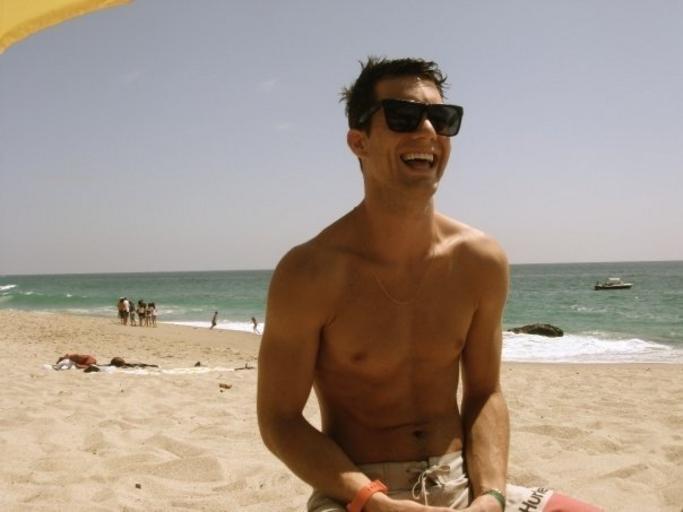 Keywords: Garysamuelian.jpg en Gary Samuelian Own Gary Beach toplessness Topless sitting men Smiling men Men with sunglasses
