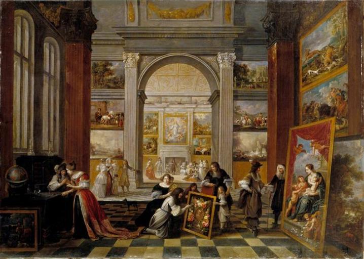 Keywords: Gaspar de Witte, Hieronymus Janssens, Wilhelm Schubert van Ehrenberg - Interior of an art collector's cabinet with many visitors.jpg Artwork creator Gaspar de Witte and creator Hieronymus Janssens and creator Wilhelm van Ehrenberg en Interior of an art collector's cabinet with many visitors 1639-1693 http //www photo rmn fr/archive/77-001289-2C6NU0H57XK2 html Oil canvas cm 120 172 Musée Girodet PD-old-100 Gaspar de Witte Hieronymus Janssens Wilhelm Schubert van Ehrenberg People in rooms in art Cabinets of curiosities in art 17th-century allegorical paintings Allegories of art 17th-century paintings of building interiors Paintings in art Images from Réunion des musées nationaux |