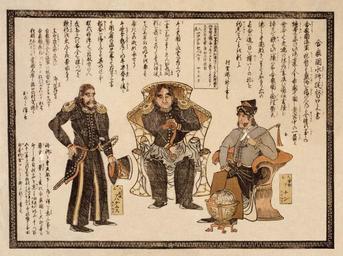 | Keywords: Gasshukoku suishi teitoku kōjōgaki (Oral statement by the American Navy admiral).png  Assessments c 2009 1 1 Gasshukoku suishi teitoku kōjōgaki Oral statement by the American Navy admiral 1 1 24 Gasshukoku suishi teitoku kōjōgaki Oral statement by the American Navy admiral A Japanese print showing three men believed to be Commander Anan age 54; Perry age 49; and Captain Henry Adams age 59 who opened up Japan to the west The text being read may be President Fillmore's letter to Emperor of Japan This is a somewhat extensive restoration meant to keep focus on the artwork instead of the damage See also File Gasshukoku suishi teitoku kōjōgaki Oral statement by the American Navy admiral minimal restoration png Gasshukoku suishi teitoku kōjōgaki Déclaration orale par l'amiral de la marine américaine Estampe japonaise montrant trois hommes considérés comme étant les commandants Anan 54 ans ; Perry 49 ans ; et le capitaine Henry Adams 59 ans qui ont forcé le Japon à s'ouvrir à l'ouest Le texte lu est probablement la lettre du président Fillmore à l'empereur du Japon La restauration de cette estamps est assez importante permettant de se concentrer sur l'art plus que sur les dégâts subits par l'œuvre A comparer avec cette version à restauration minimale Vertrag von Kanagawa Commodore Matthew Perry Mitte und andere hochrangige US-Seeleute Japanischer Farbholzschnitt Xilografía japonesa con Perry al centro y otros altos oficiales de la marina de EE UU Amerikako Armadako almirantearen ahozko adierazpena 1854 ingurukoa Ezkerretik eskuinera Anan komandantea Perry komodoroa eta Henry Adams kapitaina Japonia Mendebaldeari ateak irekitzera behartu zuen ekitaldian חיתוך עץ יפני ש אנשי הצי האמריקאיי ופרי במרכז cph 3g10708 Library of Congress ca 1854 author The Library of Congress says No known restrictions on publication File Gasshukoku suishi teitoku kōjōgaki Oral statement by the American Navy admiral minimal restoration png - The most accurate version to how it looks now - scanning errors corrected using a colourbox and the masking tape stuck to it edited out but none of the cleanup from this version File Gasshukoku suishi teitoku kōjōgaki Oral statement by the American Navy admiral unrestored png - Completely unrestored Should never be used anywhere as the colours as shown in the colour box the LOC included in the scan are obviously wrong Levels adjusted using LoC colourbox dirt and stains cloned out or selectively adjusted and cropped from LoC version PD-100 PD-Japan Ukiyo-e of historical figures and folk tales Matthew Perry naval officer 31 March Documents of Japan Featured pictures of Japan Perry Expedition 1853 Perry Expedition in art Woodblock prints of the Edo period Captain Henry Adams Yokohama-e Kurihama Yokosuka History of Yokosuka Featured pictures from the Library of Congress |